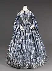 - English shot (changeable) silk taffeta morning dress is trimmed with silk satin and machine-made lace, c. 1865. Los Angeles County Museum of Art, M.2007.211.942a-b.