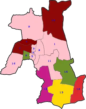 | Party | Symbol | Ward Number (9-16) | |||||||