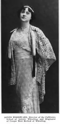 Agnes Woodward (January 3, 1872, Waterloo, New York — June 18, 1938, Los Angeles, California) was an American music educator and professional whistler, founder and head of the California School of Artistic Whistling in Los Angeles, California.