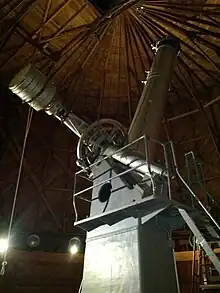 Although not specifically searching for double stars, he did make a number of discoveries while testing his completed telescope objectives,[1] including Mu Herculis, 8 Sextantis, and 95 Ceti.[2] One of Clark's sons, Alvan Graham Clark, discovered the dim companion of Sirius. Two craters bear Clark Sr.'s name. The crater Clark on the Moon is jointly named for him and his son, Alvan Graham Clark, and one on Mars is named in his honour.[3] His other son was George Bassett Clark; both sons were partners in the firm.