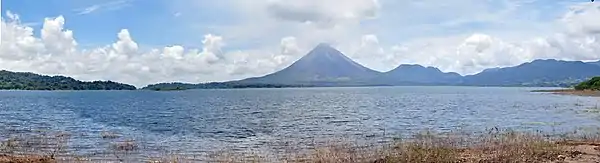 The Arenal Prehistory Project took place as the start of a larger, ongoing research effort in the area around Lake Arenal and Arenal Volcano in Guanacaste province, Costa Rica that has spanned from the early 1980s to the present day.[2] This particular area of Middle America was found to be especially suitable for archaeological study because its dominant geographical feature, the still-active Arenal Volcano, had erupted at least nine times in prehistory[3] and provided for extraordinary site-preservation with stratified layers of tephra that facilitated the dating of uncovered discoveries. Examination of the area affected by volcanic eruptions also allowed for further study of human adaptation to such events.[4]