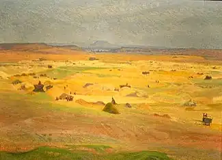 At a very early age, he entered the School of Arts and Crafts in his hometown, where he studied with José Martí y Monsó. In 1903, he was awarded a government grant to study at the Real Academia de Bellas Artes de San Fernando in Madrid. There, he studied with Antonio Muñoz Degrain, who inspired him to become a landscape painter.[1] After 1906, he became a regular participant in the National Exhibition of Fine Arts, and won several awards, culminating in 1926 with a First Class prize for "The Fields of Zaratán.