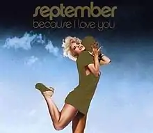 "Because I Love You" is a song by Swedish singer September from her third studio album Dancing Shoes (2007). It was released on 26 November 2008 as a promotional single for September's compilation album Gold. [1] The single was also released in the Netherlands, on 13 July 2009, to promote her compilation album Dancing in Orbit.