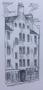 For a year, the two factions worshipped together in Bristo but relations were tense: each used its own collection plate and members of each faction broke into the church to try and change the locks.[22][23][24] During periods of expulsion from Bristo, the Burgher faction met at Carrubber's Close in the Old Town and at Bainfield House, West Fountainbridge.[25] The issue had to be settled by the Court of Session, which, finding the congregation had not been a "body corporate" at the time it purchased its lands in Bristo, ruled that the buildings were legally the property of two Burgher trustees. The Anti-Burgher congregation was thus expelled in January 1753. They founded a new church nearby at Quarry's Close off Crosscauseway.[26][27][28]