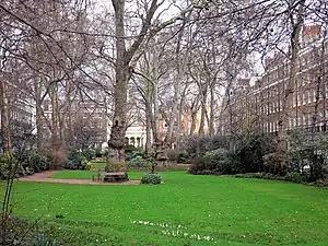 Bryanston Square is an 800-by-200-foot (244 by 61 m) garden square in Marylebone, London. Terraced buildings surround it — often merged, converted or sub-divided, some of which remain residential. The southern end has the William Pitt Byrne memorial fountain. Next to both ends are cycle parking spaces.