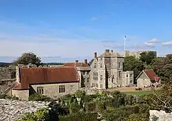 In 1377, in the reign of Richard II the castle was unsuccessfully attacked by the French. It was reputedly saved by local hero Peter de Heyno who shot the French commander. Anthony Woodville, Lord Scales, later Earl Rivers, obtained a grant of the castle and rights of Lordship in 1467. He was responsible for the addition of the Woodville Gate, now known as the Entrance Gate.[4] Woodville was killed by Richard III in 1483, but his brother Edward Woodville was given control of the castle on the accession of Henry VII in 1485.[5]