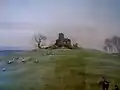 A view of Craigie Castle in its landscape from Barnweill Kirk ruins.
