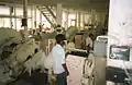 Colloidal latex is then mixed with formic acid to cause it to coagulate. The coagulum is processed in a "creping battery", a series of machines that crush, press and roll the coagula. The sheets are hung in a heated drying shed and then sorted by grade and packed for shipping.[1]