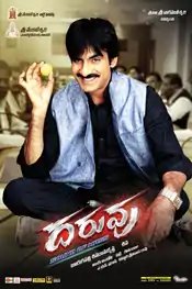 Daruvu: Sound Of Mass is a 2012 Indian Telugu-language fantasy action comedy film written and directed by Siva, produced by Burugupalli Siva Rama Krishna under Sri Venkateswara Entertainments banner and starring Ravi Teja and Taapsee in lead roles.[3] The soundtrack of the film is composed by Vijay Antony, while the cinematography is handled by Vetrivel. Anil Ravipudi penned the dialogues and Gautham Raju handled the editing department. The film is inspired from Yamudiki Mogudu. The movie was an average at box office.[4]