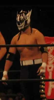 Kyosuke Mikami (三上 恭佑, Mikami Kyōsuke, born December 29, 1983),[1] better known by his ring name El Desperado (エル・デスペラード, Eru Desuperādo), is a Japanese professional wrestler. He is signed to New Japan Pro-Wrestling (NJPW),[3][4] where he is the current IWGP Junior Heavyweight Champion in his third reign. He was a member of the Suzuki-gun stable from 2014 until its disbandment in 2022.