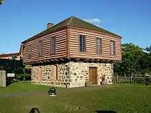 The Clergue blockhouse was originally a powder magazine at a North West Company trading post[8] before the merger of the North West Company and the Hudson's Bay Company. When the last remaining factor at the post resigned in 1867,[8] the site fell into disuse, until only the powder magazine's foundation building remained. American industrialist F.H. Clergue purchased the property and began the process of transforming it from powder magazine to living space. He lived in the blockhouse from 1894 to 1902.[9]