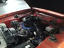 The 2.5 L engine was rated at 137 hp (102 kW; 139 PS) SAE gross or 120 hp (89 kW; 122 PS) DIN and peak torque was rated at 145 lb⋅ft (197 N⋅m) SAE gross or 132 lb⋅ft (179 N⋅m) DIN.[6] The 2.5-litre version ended production in 1977 along with the Essex V4 engine.[11] The 3,098 cc (3.1 L; 189.1 cu in) V6 engine as used in the Ford Capri RS 3100 was essentially a 3.0 L engine bored out by 1.6 mm (0.06 in) or 60 thousands of an inch from 93.6 mm (3.69 in) to 95.25 mm (3.75 in). It was capable of 148 bhp (150 PS; 110 kW) at 5000 rpm and 187 lb⋅ft (254 N⋅m) of torque at 3000 rpm.[12] It featured blue rocker covers in order to distinguish the engine from the usual 3.0 L engine and it also featured hand-polished and ported inlet and exhaust ports. Only 250 RS 3100s were produced for homologation purposes, making original 3.1-litre engines very rare, although modified engines bored +0.60 are common, one of the first 50 engines which was in a RS 3100 that was free for car magazines to review and test in fact had 165 hp (123 kW; 167 PS) instead of the 148 hp (110 kW; 150 PS) of the rest of road going RS 3100s, this was achieved with a higher lift camshaft.[13][14][15][16] These figures vary somewhat depending on the source.[17][18]