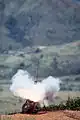 When launched, the GTR-18's rocket motor produces a distinctive white plume, providing a realistic simulation of the launch of a surface-to-air missile.[8] While the ordinary GTR-18A has a simple, model rocket type motor, an improved "Dual Thrust Smokey Sam" tested in the early 2000s featured a modified rocket motor, providing a 1.5 second boost period, followed by a lower-thrust sustainer burn with burnout occurring at 7.1 seconds after launch.[9]