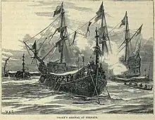 The Sultanate of Aceh is famous for the use of Ottoman-derived galleys. Aceh's term for galley is ghali, which is derived from the Portuguese word galé, not from the Turkish term for it (Kadırga).[1]: 163 The Acehnese in the 1568 siege of Portuguese Malacca used 4 large galleys of about 40–50 meters long each with 190 rowers in 24 banks. They were armed with 12 large camelos (3 at each bow side, 4 at the stern), 1 basilisk (bow-mounted), 12 falcons, and 40 swivel guns.[1]: 164 By then cannons, firearms, and other war materials had come annually from Jeddah, and the Turks also sent military experts, galleys experts, and technicians.[14] The average Acehnese galley in the second half of the 16th century would have been about 50 meters long and had two masts that were equipped with square sails and topsails, not lateen sails like those of Portuguese galleys.[15]: 106–107 [16][1]: 165 It would have been propelled by 24 oars on each side, carrying about 200 men aboard, and armed with about 20 cannons (2 or 3 large ones at the bow, with the rest being swivel guns).[1]: 165