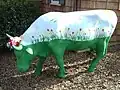In April 2005, the cow sculpture, was designed in a Spring/Easter scheme and represented the first use of a sponge painting technique to achieve the green grass effect, with sufficient fading to deliver a suitable image.