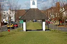 Today visitors can walk along new sidewalks lit at night by new versions of the park's original lampposts. A new fountain resembling the original, a gazebo much like the old Methodist meeting house that sat at the south end of the park, and a new clock adorn the grounds. A large stone sign and monuments to local veterans depict some of the park and town's history. The new elm trees are planted in roughly the same pattern as the originals.