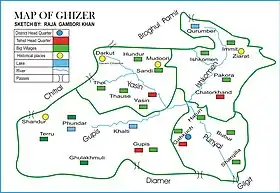 - ↑ On the map of Gilgit-Baltistan, the Ishkoman Tehsil is wrongly shown as part of the Gupis-Yasin District.