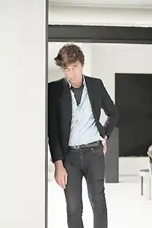 Picart introduced Slimane to Pierre Bergé, who was searching for a men's wear designer for Yves Saint Laurent.[6] To Slimane's surprise, Pierre Bergé hired him in 1996 as ready-to-wear director of men's collections at the house, where he would later become artistic director. Slimane expressed great admiration for Yves Saint Laurent, yet he was not interested paying homage to the legendary designer—he was more interested in capturing the "spirit" and "mystique" of him.[6][7] When Slimane started, there were only a handful of men's designs at the house dating from Mr. Saint Laurent's early years.[6][7] Slimane created a new line built on these iconic pieces that was imbued with mystery, seduction, and an element of subversiveness.[6][7] It also challenged gender roles, just as Mr. Saint Laurent had done earlier.[7] Slimane expressed that "everything I do is based on seduction."[6] One report describes his designs' sex appeal as, "not based on over-the-top embellishment ... rather, it comes from the same honest principles that have always driven fashion: cut, proportion and silhouette."[7] Slimane's designs catapulted sales and led to their increased availability at boutiques around the world.[7]