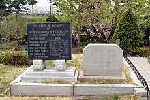 In June 1902, at the age of 44, Appenzeller was traveling to a southern port city, Mokpo, to attend a meeting for the Bible translation. He sailed aboard the Kumagawa Maru, a steamship which collided suddenly at night with another vessel. The loss of life on the Kumagawa Maru was 27 in all. A survivor, one Mr Bowlby, describes the speed of the sinking followed by the boiler bursting. Appenzeller is thought to have fatally delayed his escape from the vessel by trying to wake a Korean woman and her child so as to get them out of their cabin.[9] A cenotaph in his honor was erected at the Yanghwajin Foreigners' Cemetery, the gravesite of over 300 foreigners including over 80 missionaries from many denominations including those sent by the United Methodist Church, and its predecessor denominations in the late 19th and early 20th centuries.