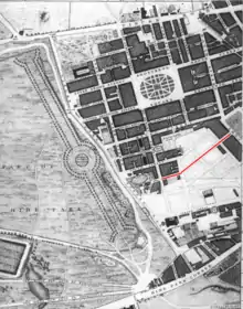 Hill Street marked in red on John Rocque's map of 1746
