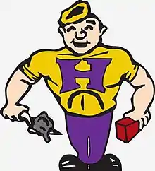The sports teams at Hobart High School are known as the "Brickies", a name derived from the brick yards that were historically located in Hobart and employed many people in the area. The school mascot is a bricklayer named Yohan. Uniform colors are Purple and Gold. Sports offered include:[6]