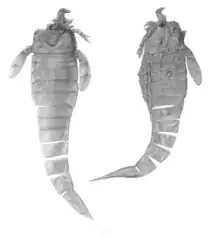 - ↑ Plotnick, Roy E.; Baumiller, Tomasz K. (1988-01-01). "The pterygotid telson as a biological rudder". Lethaia. 21 (1): 13–27. doi:10.1111/j.1502-3931.1988.tb01746.x. ISSN 1502-3931.