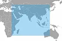 The Indian Regional Navigation Satellite System (IRNSS), with an operational name of NavIC (acronym for Navigation with Indian Constellation; also, nāvik 'sailor' or 'navigator' in Indian languages),[2] is an autonomous regional satellite navigation system that provides accurate real-time positioning and timing services.[3] It covers India and a region extending 1,500 km (930 mi) around it, with plans for further extension. An extended service area lies between the primary service area and a rectangle area enclosed by the 30th parallel south to the 50th parallel north and the 30th meridian east to the 130th meridian east, 1,500–6,000 km (930–3,730 mi) beyond borders where some of the NavIC satellites are visible but the position is not always computable with assured accuracy.[4] The system currently consists of a constellation of eight [5] satellites,[6][7] with two additional satellites on ground as stand-by.[8]