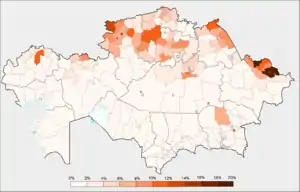 - ↑ Итоги национальной переписи населения 2009 года. Национальный состав, вероисповедание и владения языками в Республике Казахстан