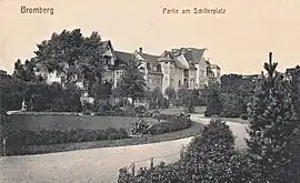The park has been designed by Konrad Neumann, then director of the Municipal gardens of Bromberg in 1901; its initial surface was 2.8 hectares (28,000 m2). It was part of urban plans laid out in 1903, and developed through 1911[1] The design was inspired from English gardens, with about 80 species of trees and ornamental trees, mainly endemical native species.[2] The main entrance was located at Bismark Platz, today at the junction between Słowackiego and January 20, 1920, streets. The northern edge on Bulöw Straße (Adam Mickiewicz Alley) was a lawn planted with roses and low shrubs.[3]