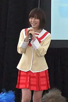 Mai Aizawa (相沢 舞, Aizawa Mai, born August 21) is a Japanese voice actress and singer affiliated with Aoni Production. She played Ayano in Lucky Star, Natsumi Murakami in Negima and Mio Naganohara in Nichijou.[1] Her album, Moi, was illustrated by Ken Akamatsu.[2] Aizawa performed theme songs for the variety show Gyōkai yōgo no kiso chishiki dan mitsu on'na gakuen (ja:業界用語の基礎知識 壇蜜女学園).