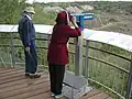 Exhibits from the pit may be seen in the Messel town,[20] the fossil Museum in Messel,[21] the Hessisches Landesmuseum in Darmstadt (5 km (3.1 mi) from Messel)[22] and also the Senckenberg Museum in Frankfurt am Main (some 30 km (19 mi) from Messel).[23] Casual visitors can park close to the pit and walk around 300 m (0.19 mi) to a viewing platform overlooking the pit. Entrance to the pit is only possible as part of a specially organized tour.