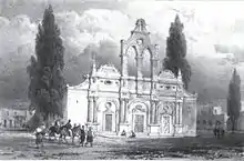 114 survivors were taken prisoner and transported to Rethymno where they were subjected to numerous humiliations from the officers responsible for their transport, but also by the Muslim population who arrived to throw stones and insults when they entered the city.[31] The women and children were imprisoned for a week in the church of the Presentation of the Virgin. The men were imprisoned for a year in difficult conditions. The Russian consulate had to intervene to require Mustafa Pasha to keep basic hygienic conditions and provide clothing to the prisoners.[32] After one year, the prisoners were released.