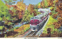 ![]() A postcard depiction of the Thoroughbred, with an EMD F3 in the lead. | |