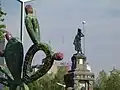 The construction of the monument was part of a nationalist discourse, promoted through a program of public sculpture and an expansion of the Paseo de la Reforma.[1][2] Its construction occurred subsequent to the Monument to Christopher Columbus, located at the next major roundabout (glorieta) of the same wide avenue, and in contrast to it, as an attempt to highlight the mestizo (mixed origin) identity of contemporary Mexico.[1] It is also deliberately made in the same scale as monuments celebrating national heroes from the 19th Century Mexican War of Independence.[3] Alongside the Mexico Pavilion at the 1889 Paris exhibition by Antonio Anza, the monument was part of a failed search for a purely Mexican artistic style.[4]