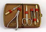 Manicures (for the hands) and pedicures (for the feet) are health and cosmetic procedures to groom, trim, and paint the nails and manage calluses. They require various tools such as cuticle scissors, nail scissors, nail clippers, and nail files. Artificial nails can also be fixed onto real nails for cosmetic purposes.