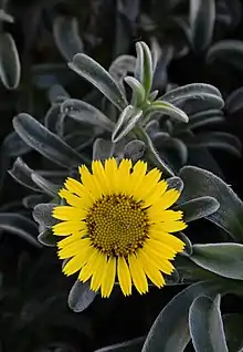 Pallenis maritima (syn. Asteriscus maritimus) is a herbaceous perennial in the family Asteraceae. The species is native to the Canary Islands, southern Portugal, the western Mediterranean, and Greece. It grows up to 30 cm high and 45 cm in width and produces yellow "daisy" flowerheads with darker yellow centres.