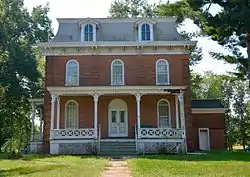 The Patterson Hamer House is a historic house located at 405 West 5th Street in Vermont, Illinois. Local businessman Patterson Hamer had the house built for his family in 1872–73. The house is designed in the Second Empire style, which was inspired by French architecture and popular in the United States from the 1860s through the 1880s. A mansard roof with two projecting dormers, a key feature of Second Empire designs, tops the house; the roof has cornices at the top and bottom and paired brackets along its eaves. The house also features three porches, all of them part of the original design, and arched windows. The property also includes a carriage house and a privy; both are designed to match the house, and the former has its own mansard roof.[2]