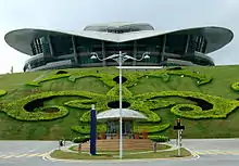 The Putrajaya International Convention Centre (PICC; Malay: Pusat Konvensyen Antarabangsa Putrajaya) is a convention centre in Putrajaya, Malaysia. It occupies an area of 135,000 square meters in Precinct 5. The building which began construction in 2001 and was completed in September 2003, is designed by fourth prime minister Mahathir Mohamad to look like the eye of pending perak (a silver Malay royal belt buckle).[1] It was renamed from the Putrajaya Convention Centre in October 2004 to its present name to reflect its international status on par with conference centres in world-class cities such London, Tokyo and Paris.