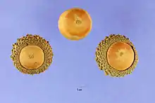The fruit is an acorn. They are generally oval or oblong in shape, ranging from 13 to 25 millimetres (1⁄2 to 1 in) in length.[6] The acorn contributes to the overcup oak's common name. The acorns are almost entirely covered by their cup, hence the name overcup.[8] The cup has gray, pubescent scales. The acorns also have a unique spongy shell that make them buoyant.[9] The pericarp of overcup oak acorns is unusually large for oaks and makes up 50% of acorn mass. The pericarp only makes up 30% of mass in other oak trees. [6]