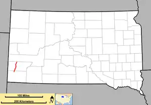 | Custer | Pringle | 15.6 | 25.1 | South end of US 385 concurrency | |