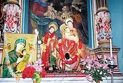 An annual two-day festival held at the church bears a striking similarity to the Hindu festival held at Trichhur, a district town 28 kilometres (17 mi) away from the church on the same days, with lot of fanfare of pageants, orchestrations, and pyrotechnics.[35] During the Lenten season, the popular festival celebrated is called the 'Palayur Mahatheerthadanam' or Great Pilgrimage, conducted under the auspices of the archdiocese, when thousands of devotees, without caste distinction, participate in the festival.[14][36]