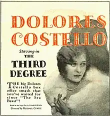 The Third Degree is a 1926 American silent romance film produced and distributed by Warner Bros. and directed by Michael Curtiz, in his first American film.[2] Starring Dolores Costello, it is based on the hit 1909 play of the same name written by Charles Klein that starred Helen Ware.[3][4]