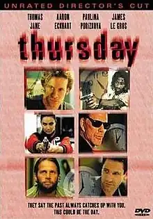 Thursday is a 1998 American black comedy crime-thriller film written and directed by Skip Woods and starring Thomas Jane, Aaron Eckhart, Paulina Porizkova, Paula Marshall, Michael Jeter and Mickey Rourke. It won the Special Jury Prize at the Cognac Festival.