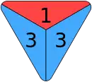 The notation used here for the MacMahon equilateral triangular tiles is a simple enumeration of each edge, in anti-clockwise order, starting from the bottom left edge. Rotating each tile by 120° may change this notation (e.g., after rotating the 314 tile, the revised notation would become 431 and 143 in turn) but the actual tile itself remains physically unchanged regardless of its orientation; in other words, these tiles are identical up to rotation despite the change in notation. For consistency, a notation may be adopted in which the count starts from the lowest-numbered edge, proceeding anti-clockwise; in that case, this tile would always be denoted 143. A separate signifier could be used to indicate orientation, for example, the clock hour position of the ones digit, so 143.08 = [314] and 143.04 = [431].