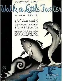 Walk a Little Faster is a musical revue with sketches by S. J. Perelman and Robert MacGunigle, music by Vernon Duke, and lyrics by E. Y. Harburg.