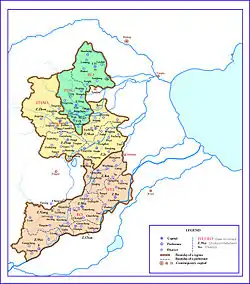 Wang Rong was probably born in 877.[2][3][4][5] At the time of his birth, his father Wang Jingchong was the military governor (Jiedushi) of Chengde Circuit (成德, headquartered in modern Shijiazhuang, Hebei), which the Wang family had held in de facto independence since Wang Jingchong's great-grandfather Wang Tingcou.[2] Wang Rong's mother was a Lady He; it is not known whether she was Wang Jingchong's wife or concubine, but she was described as being virtuous and strict in discipline in her rearing of Wang Rong.[3]