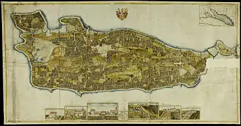 Wetti also produced several written works, the best known of those that survive being his biography of Saint Gall, the founder of Reichenau's sister monastery, St Gall.[7] Life of Saint Gall is divided into two books. The first book, dated to the early ninth century, briefly describes him as a studious, pious child, who in all likelihood "had been 'commended' to Columbanus at his parents' instigation"[8]commended in this sense denotes that Gall would have been entrusted to Columbanus, and does not suggest that he underwent the oblation rituals which became more common in the early ninth century.[9] The second book is dated to the early 820s and was later redrafted by Walahfrid Strabo. It provides a more detailed account of the saint's work in establishing the monastery of St Gall, his later life, death, and the miracles around his grave until the end of the eighth century.[8][10] While these biographies are the best known of Wetti's surviving work, he might have produced a larger body of work, although evidence to substantiate this is lacking.