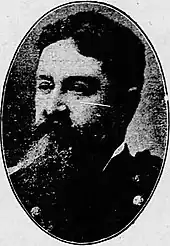 U.S. Attorney Jeffords became seriously ill shortly after the trial and died several months later.[56] Major Wham in turn was held responsible for the lost funds. He was relieved of this debt on January 21, 1891, when the U.S. Congress passed an act relieving him of responsibility.[57] Smith, who had ignored his duties as territorial delegate to take the case, was attacked politically for his involvement.[52] This left the majority of the blame for the failed prosecution on U.S. Marshal Meade.[50] Meade was replaced as U.S. Marshal on March 4, 1890. His successor, Robert H. "Bob" Paul, adopted a watch and wait philosophy hoping a $500 reward offered by the Department of Justice at the urging of the War Department would lead to a resolution of the case.[58] In August 1892, the Department of Justice asked the U.S. Attorney to investigate charges that the jury had been bribed during the Wham trial.[58] In recognition for their actions during the robbery, Sergeant Benjamin Brown and Corporal Isaiah Mays were awarded the Medal of Honor. Additionally, privates George Arrington, Benjamin Burge, Julius Harrington, Hamilton Lewis, Squire Williams, Jason Young, Thorton Hams, and Jason Wheeler were each awarded a Certificate of Merit.[59]