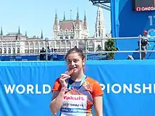 Yana Nestsiarava (Belarusian: Яна Несцерава; born 14 June 1992) is a Belarusian female high diver. She won the bronze medal at the 2015 World Aquatics Championships in the women's high diving.[2] Two years later at the 2017 Championships she achieved the same result, taking bronze in the women's high diving event.[3]